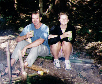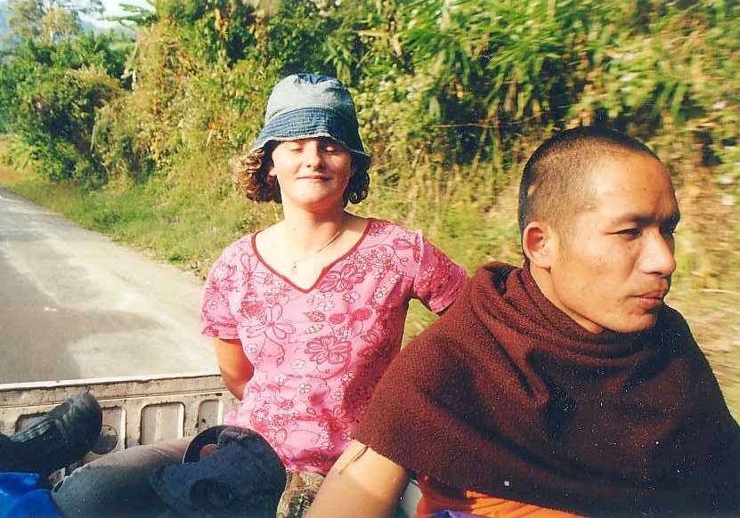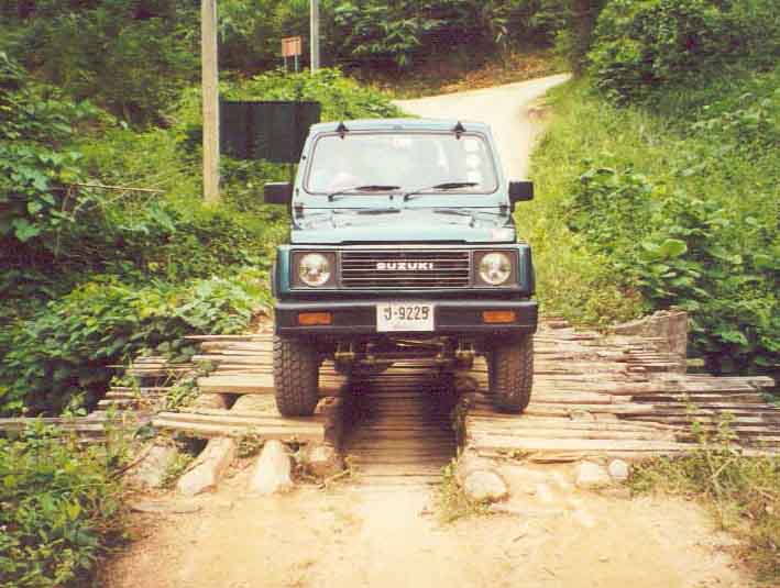 Wir haben einen Auto mit Vierrad-Antrieb ausgeliehen und sind in die Berge Richtung Nordosten gestartet, wobei ich fahren durfte, was wegen Linksverkehr und der abenteuerlichen Fahrweise der Thailänder sehr lustig war. Durch enge und steile Dschungelwege ging es dann zu abgelegenen Ortschaften [Jeepfahrt]. Überall haben uns die Einheimischen erstaunt angelächelt, da sich sonst wohl keine Touristen hierher verirren und wir so etwas besonders waren.