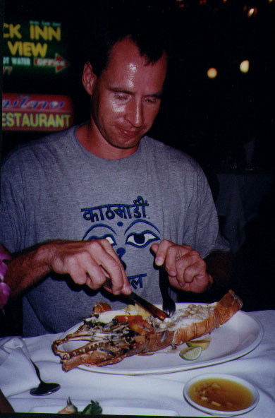 Das Essen hier ist Klasse. Gestern hatte ich Haifischsteak und heute gegrillten Lobster