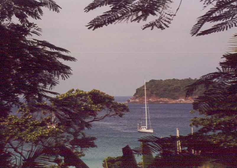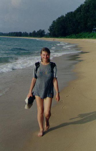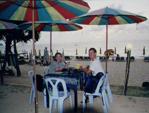 Um mehr von der Insel Phuket zu haben, sind wir mit dem Nachtbus von Prachuap losgefahren und morgens um sieben in Phuket (Stadt) angekommen. Von dort sind wir gleich nach Kata weitergefahren, einem kleineren Touristenort (hier gibt es nur Touristenorte) an der Westküste, der mir Miles in Nepal empfohlen hatte. Wir haben auch einen netten Bungalow unter Palmen, zwei Minuten vom Strand mit Blick auf's Meer, gefunden