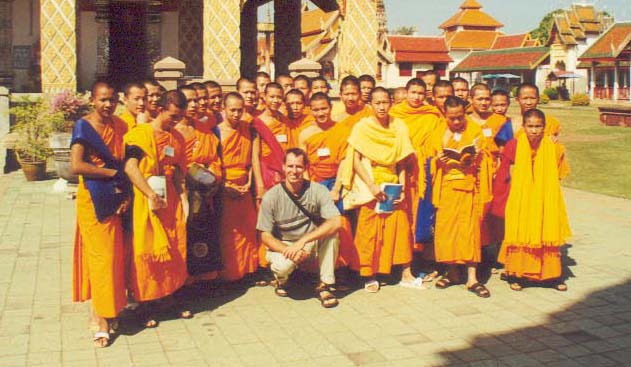 Obwohl zwanzigmal kleiner, hat Chiang Mai fast genauso viele Tempel wie Bangkok. Heute haben wir einige davon besucht [Buddha]. Abends waren wir dann auf dem Nachtbasar, wo Drew viel Geld für eine Schnitzerei, die er seienem Vater schenken will, ausgegeben hat.