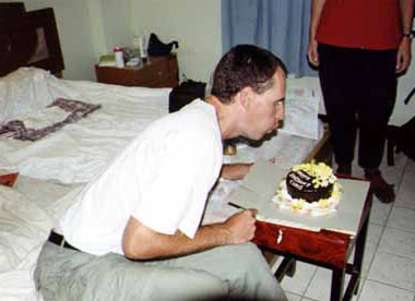 Zurück in Phitsanulok haben wir dann abends meinen Geburtstag gefeiert. Katrin, Colena und Drew haben eine Geburtstagstorte besorgt, die wir gegessen haben